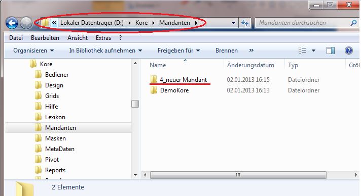 Der neue Mandant wird automatisch im Verzeichnis Mandanten des Installationsverzeichnisses angelegt.