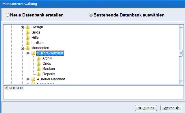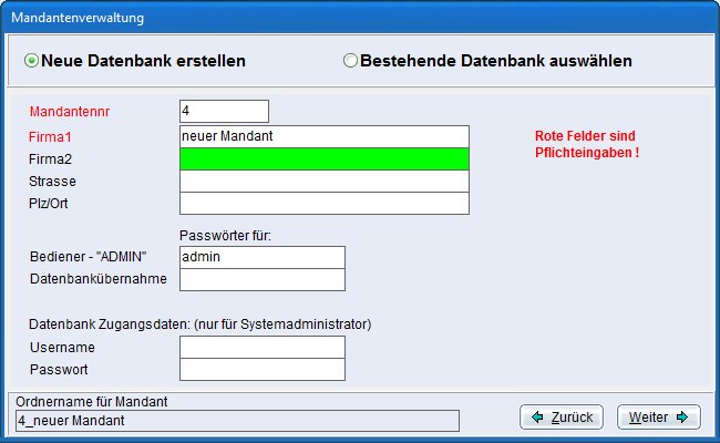 Mit " Weiter " gelangt man in die Mandantenverwaltung.