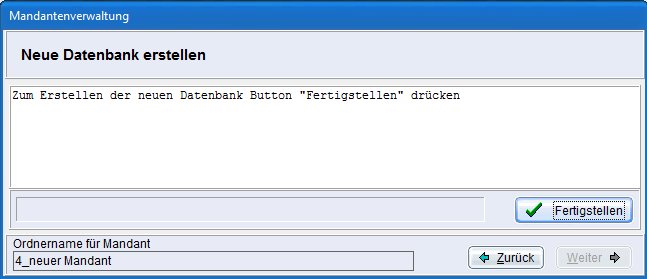 Mit Fertigstellen wird die neue Datenbank erstellt.