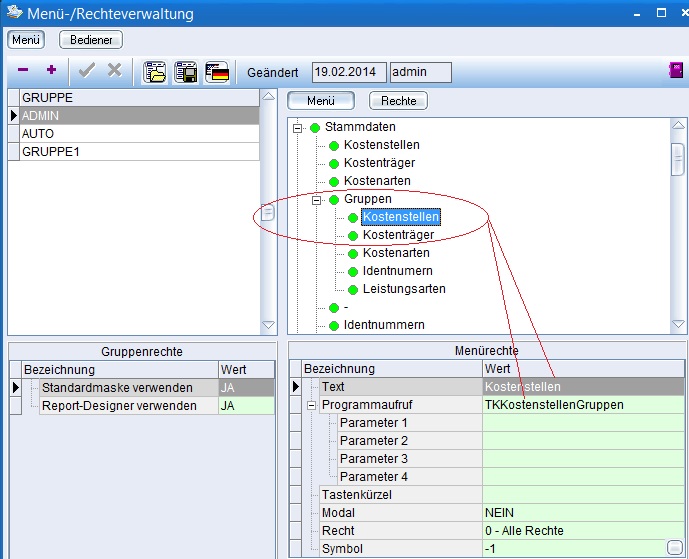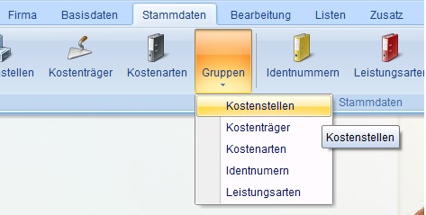 Bei der Position " Gruppen " kommt nur der Text, kein Programmaufruf, da dieser Punkt ein Hauptpunkt ist über den einzelnen Positionen ( Kostenstellen, Kostenträger.....)