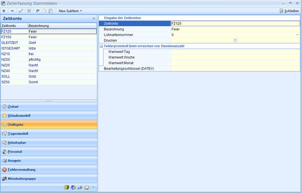 Zeitkonto: Legen Sie hier den eindeutigen Namen des Zeitkontos festzulegen. Die Eingabe kann bis zu 10-stellig alphanumerisch sein.