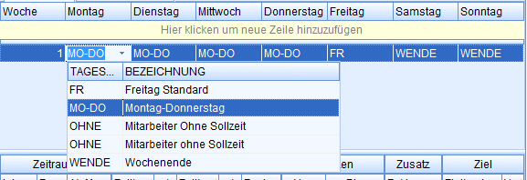 Im Wochenplan ist für jeden Wochentag, auch für die arbeitsfreien Tage, ein zuvor eingestelltes Tagesmodell einzugeben.